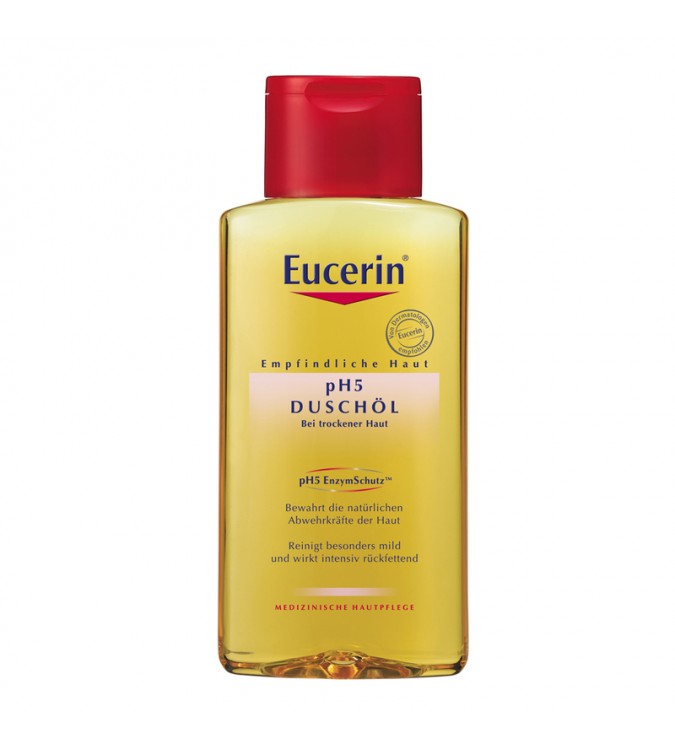Eucerin pH5 olje za prhanje je bilo razvito posebej za potrebe občutljive kože. Njegova edinstvena kombinacija pH5 citratnega pufra in izjemno blagih površinsko aktivnih snovi ščiti koži lastne encime. Z intenzivnim dovajanjem lipidov poskrbi za prijetno blagodejen in svilnato mehak občutek na koži, hkrati pa prepreči izsušitev kože, tudi pri pogostem prhanju.