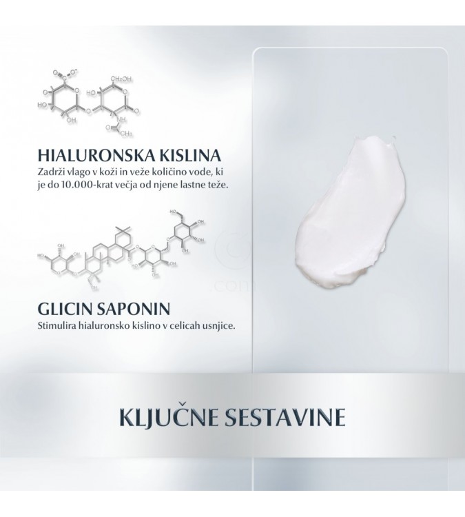 Krema reaktivira koži lastno tvorbo hialuronske kisline in učinkovito zapolni gube od znotraj navzven.
