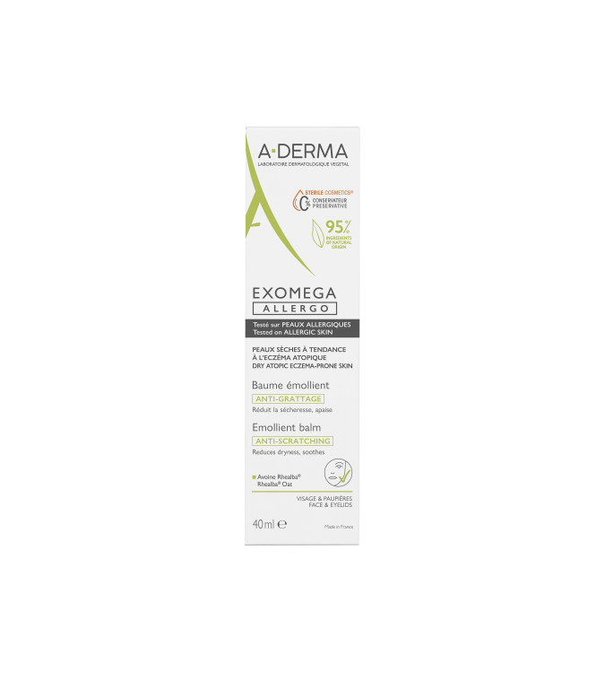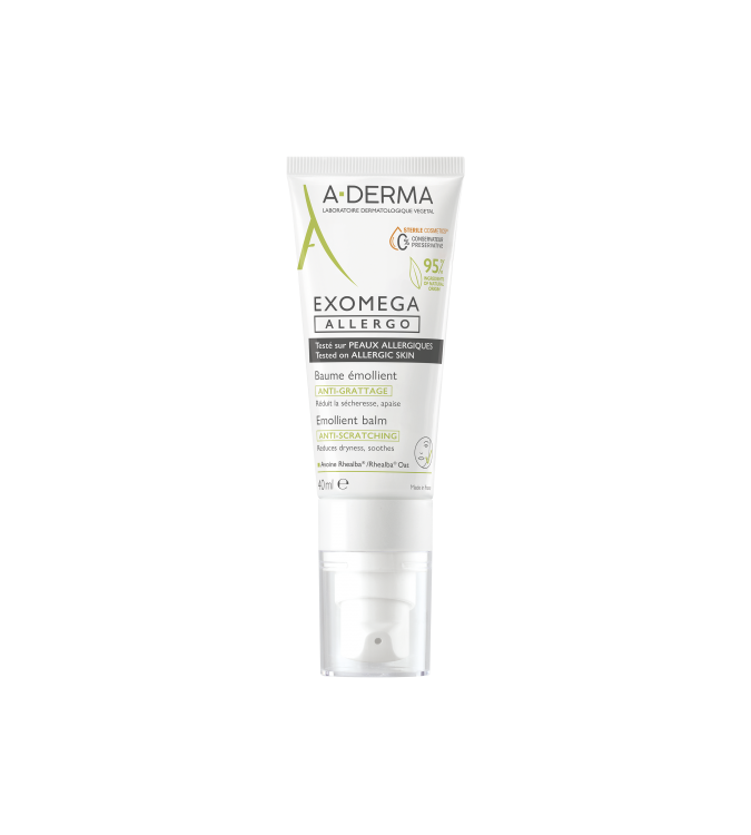 A-Derma Exomega Allergo emolientni balzam je namenjen suhi koži, nagnjeni k atopijskemu dermatitisu ter koži nagnjeni k alergijam, ki srbi. Izdelek je primeren za nego od rojstva dalje za vso družino.