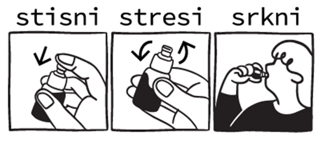 STISNI -> STRESI -> SRKNI: Aktivne sestavine so shranjene v zamašku in na ta način zaščitene pred zunanjimi vplivi, kar podaljša njihovo obstojnost. Pred uporabo se zamašek stisne, sestavine se sprostijo v sadni koncentrat in zaužijejo raztopljene, kar izboljša njihovo absorpcijo.