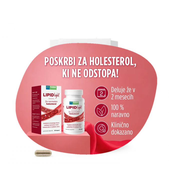 Normalna raven holesterola s kombinacijo naravnih izvlečkov staranega česna in bergamotke. Delovanje boste opazili že po 2 mesecih rednega jemanja. Največji učinek se pokaže po 6 mesecih rednega uživanja. Preverjeno, učinkovito, varno in kakovostno. LIPIDlight je prehransko dopolnilo.