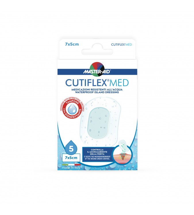 Medicinski pripomoček Master Aid Cutiflex prožen, elastičen, izredno tanek (~20 mikronov) prozoren obliž iz poliuretana, ki se popolnoma, kot druga koža, oprime in varuje rano, tudi če je v vodi.