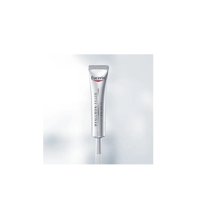 Eucerin Hyaluron-Filler krema za okrog oči združuje ZF 15 in sistem UVA-filtrov, da kožo zaščiti pred prezgodnjim staranjem in poglobitvijo gub.