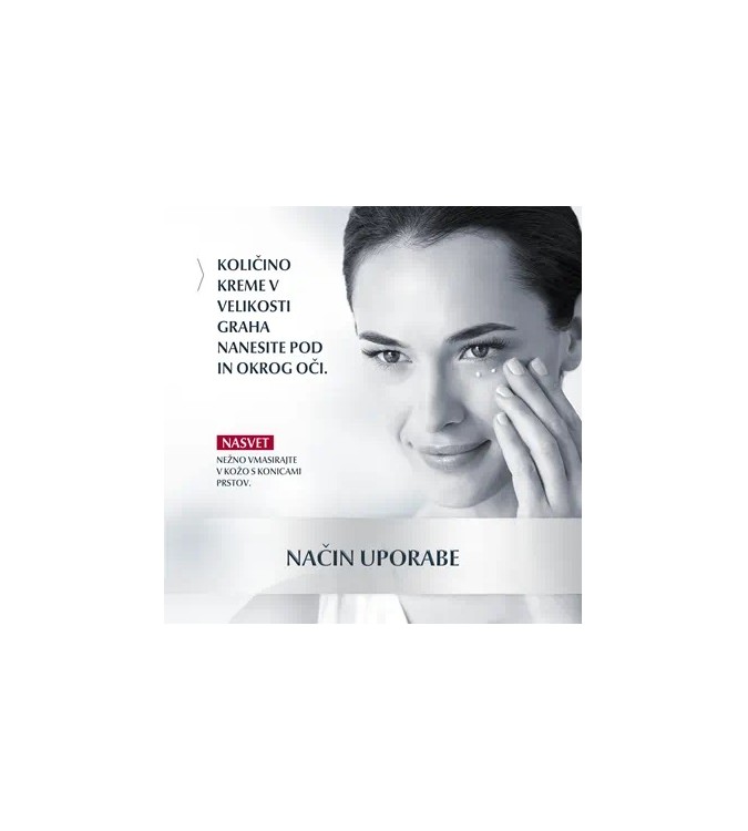 Napredna formula kreme za okrog oči z ZF 15 in UVA-zaščito ciljno deluje na gube okrog oči in je oftalmološko preizkušena.
