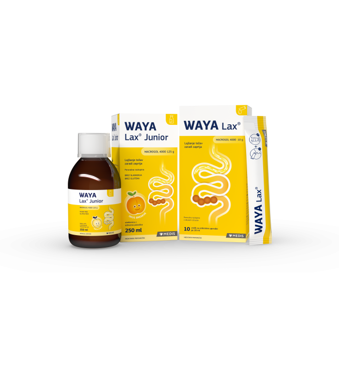 WAYA Lax® nežno in učinkovito odpravlja zaprtje. Primeren je za uporabo pri odraslih in otrocih, starejših od 12 let. Je zelo prijetnega okusa po citrusih, brez sladkorja in brez glutena. Izdelek z osmotskim mehanizmom ureja delovanje črevesa in lajša težave zaradi zaprtja. Na voljo je v vrečicah za direktno zaužitje, kar omogoča enostavno odmerjanje.